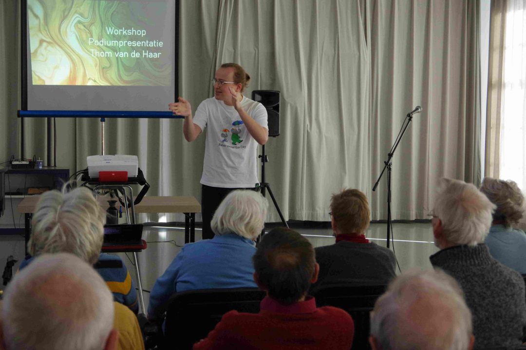 In de ochtend vond de workshop ‘Zingen met expressie’ plaats die op enthousiaste en expressieve manier werd geleid door Thom van de Haar. Thom is acteur en docent theater & musical bij de Muzen in Veenendaal ( https://www.demuzen.nl/docenten/thom-van-de-haar ).