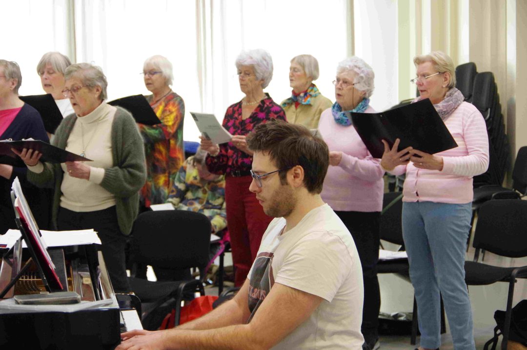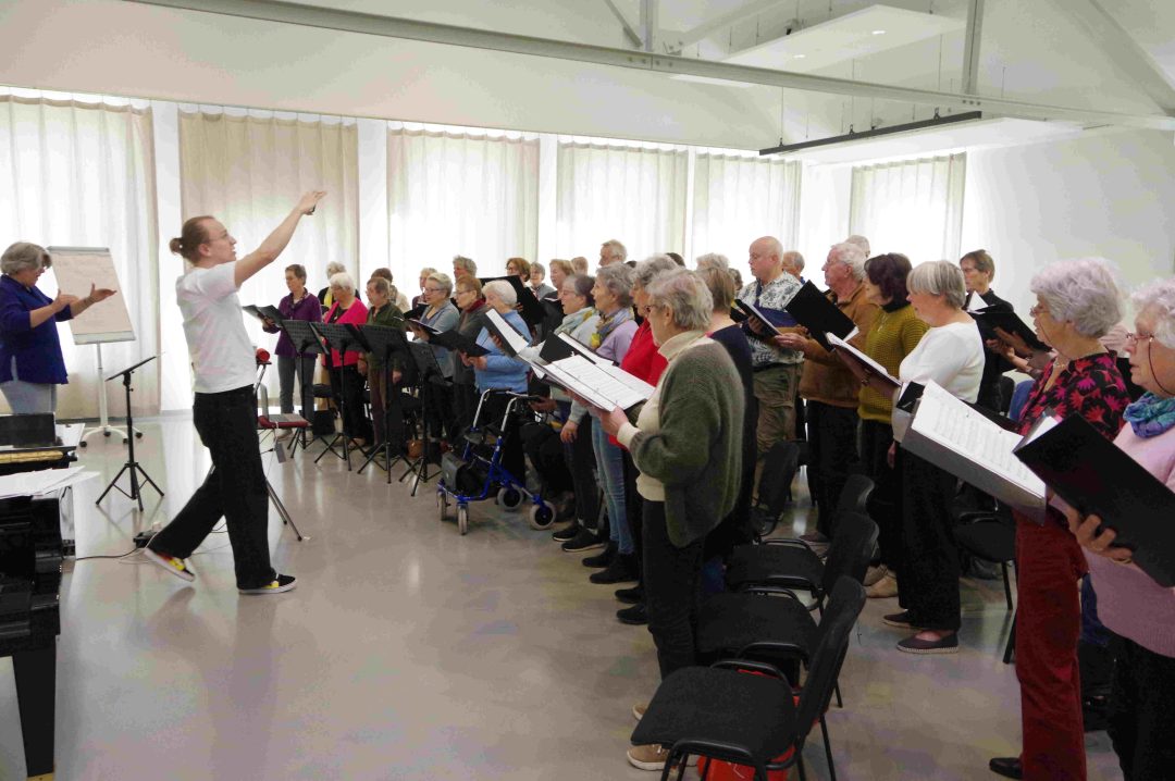 Tijdens de lunch was er gelegenheid om bij te praten en te socialiseren. Na de lunch is de middag onder leiding van dirigent Lisette van de Loo – met Petros Papoulias aan de piano – besteed aan het repeteren van de stukken voor het geplande concert op 29 maart 2025.